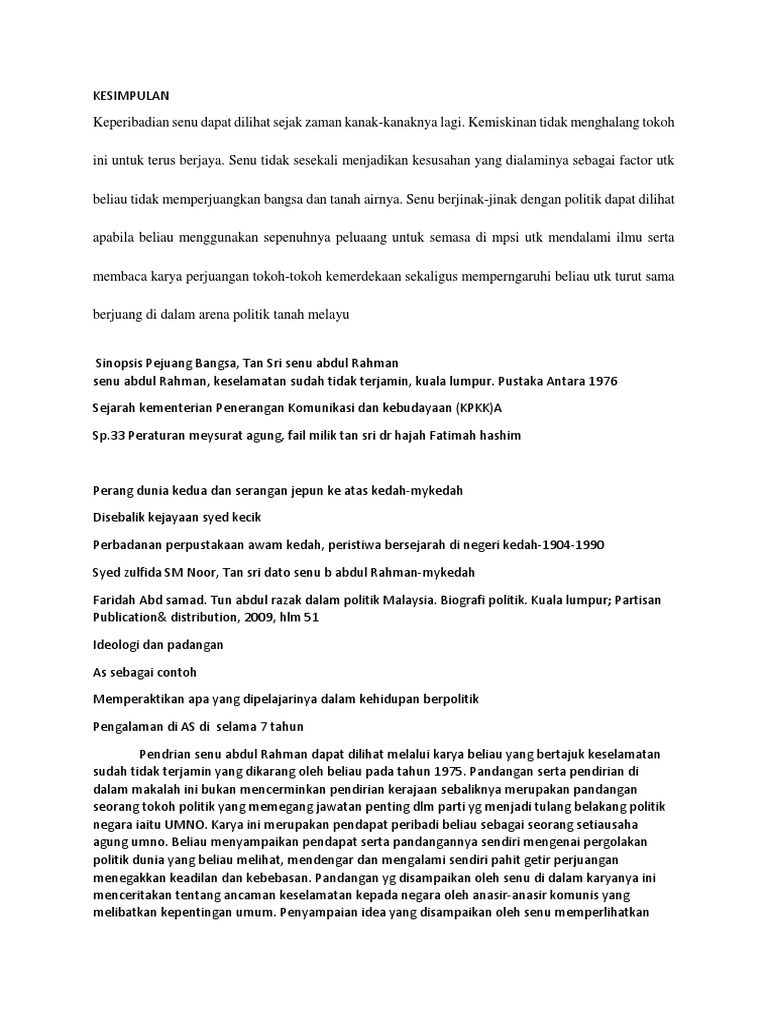 Senu Abdul Rahman Dan Perjuagan Politik Di Kedah Pdf
